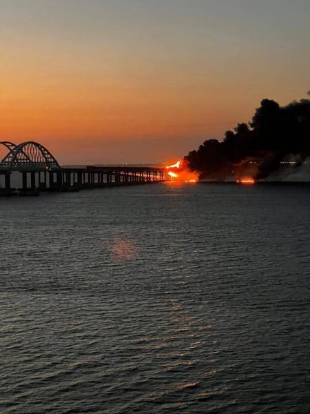 El puente fue atacado con un camión bomba cargado con varias toneladas de explosivos que provocó el derrumbe de 2 tramos del puente carretero y el incendio de un tren cisterna cargado con combustibles y lubricantes que redujo las vías férreas a cenizas generando el inmediato racionamiento en Crimea y dejando desabastecido al frente sur en Khersón, que a las dificultades de no tener puentes operativos que los conecten al este del Dnieper se suma que ahora no habrá líneas seguras para llevar munición, medicinas, uniformes de invierno, alimentos y los tan necesarios soldados a las líneas del frente para tener una rotación medianamente aceptable como la tienen las tropas de Kyiv.