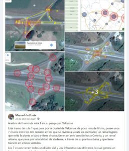 Estos dos cruces analizados, no son los únicos que agregan riesgo a este sector de la ruta. Este tramo de ruta 1 que pasa por la ciudad de Valdense, de apenas 8 kms., posee unos 7 cruces principales, con diseño o infraestructura de cruce, entre los dos ramales.