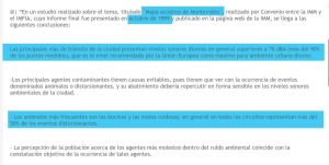 Del informe publicado en 1999, se destaca que en más del 90% de los puntos medidos en la capital, el ruido estaba por encima de los niveles aceptados como tolerables en la Unión Europea.