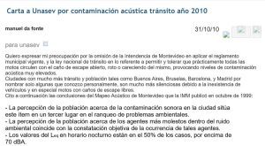 Carta a UNASEV por contaminación acústica en el tránsito año 2010