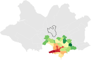 Este estudio muestra las áreas que han perdido mayor cantidad de población en Montevideo, y que serían prioritarias para encarar políticas de incentivo para la repoblación. Cuanto más intenso el rojo, mayor la pérdida de habitantes.