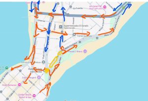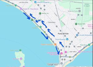 . Plan de circulación unidireccional en la Barra con retorno por paralelas a la ruta 10, estableciendo un circuito circular con circulación en sentido único. Basta una mirada en Google Maps y espontáneamente aparece marcado lo que sería un circuito natural de circulación para la Barra, eliminando el tránsito en doble sentido, tanto en la ruta 10, como en las paralelas.