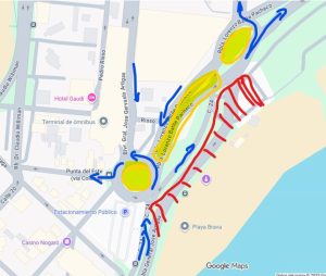 . Modificación de la circulación en la unión entre la península y la rambla de playa Brava con creación de una rotonda tipo maní, o una doble rotonda.