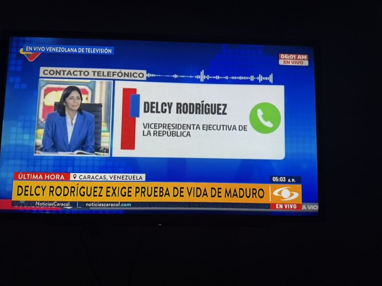 Rodríguez ha asegurado que desconoce el paradero del presidente y la primera dama, Cilia Flores. En un conversación telefónica con el canal estatal Venezolana de Televisión (VTV), ha exigido una prueba de vida inmediata a Estados Unidos tanto de Maduro como de Flores.