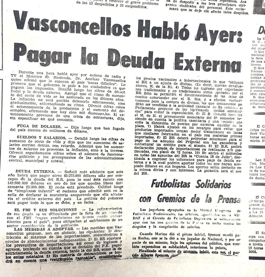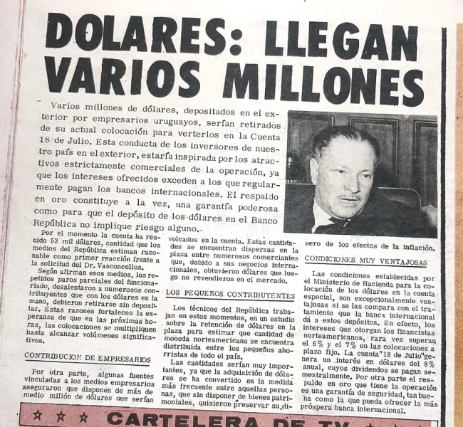Si miramos la idea como una especie de «colecta popular» para financiar los monopolios estatales, o para ayudar a cubrir sus déficits, la historia reciente (y olvidada) nos trae a la memoria el fracasado intento del entonces Ministro de Hacienda del gobierno del presidente Gestido, Amílcar Vasconcellos, de ayudar a pagar la deuda externa mediante el aporte voluntario de los ciudadanos, invitados a depositar dólares en la «cuenta patriótica 18 de Julio», abierta en el Banco República a tales efectos.